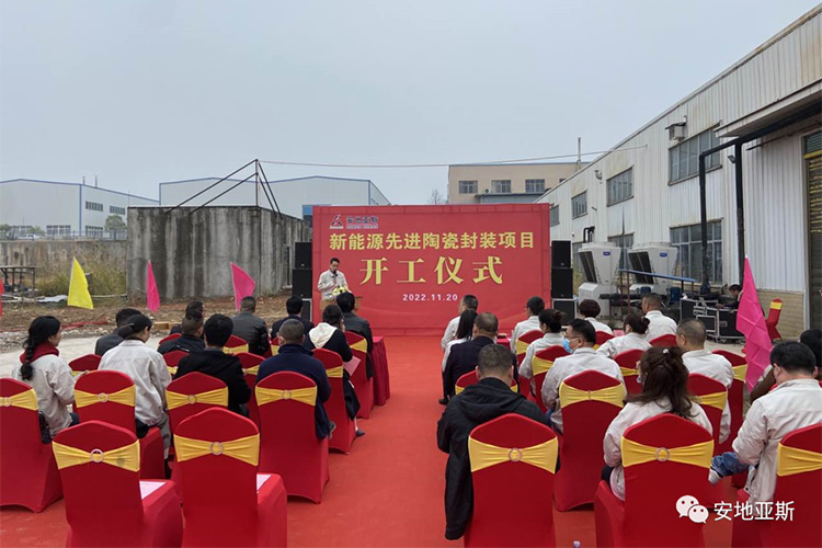 2022年11月20日早上,萬(wàn)里無(wú)云,溫暖的陽(yáng)光灑滿大地,公司新能源先進(jìn)陶瓷封裝項(xiàng)目工地上彩旗飄飄、火紅的氣球隨風(fēng)飄揚(yáng)。主席臺(tái)上“新能源先進(jìn)陶瓷封裝項(xiàng)目開工儀式”幾個(gè)大字分外醒目,今天是安地人高興的日子,我們將在這里舉行新廠房建設(shè)開工儀式。